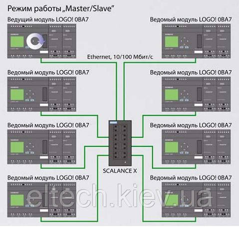 Подальше розширення можливе при використанні центрального ПЛК типу LOGO 0BA7(відмінності від інших типів ПЛК будуть наведені нижче), що має у своєму складі порт Ethernet, що дозволяє розширити систему за рахунок мережевого обміну з іншими системами на базі LOGO 0BA7 зі своїми модулями розширення.