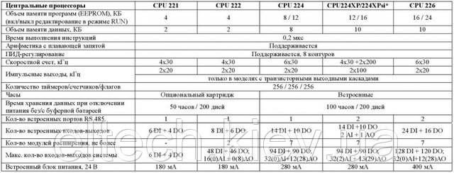 Також існує обмеження на розширення системи. У таблиці наведені типи ПЛК, вбудовані виходу/виходу і допустимі розширення.
